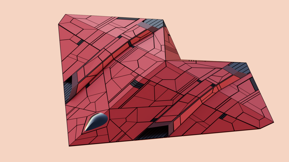 Futuristic heart shaped fighter jet model, made with Blender (.blend), other formats also provided (.fbx, .obj).