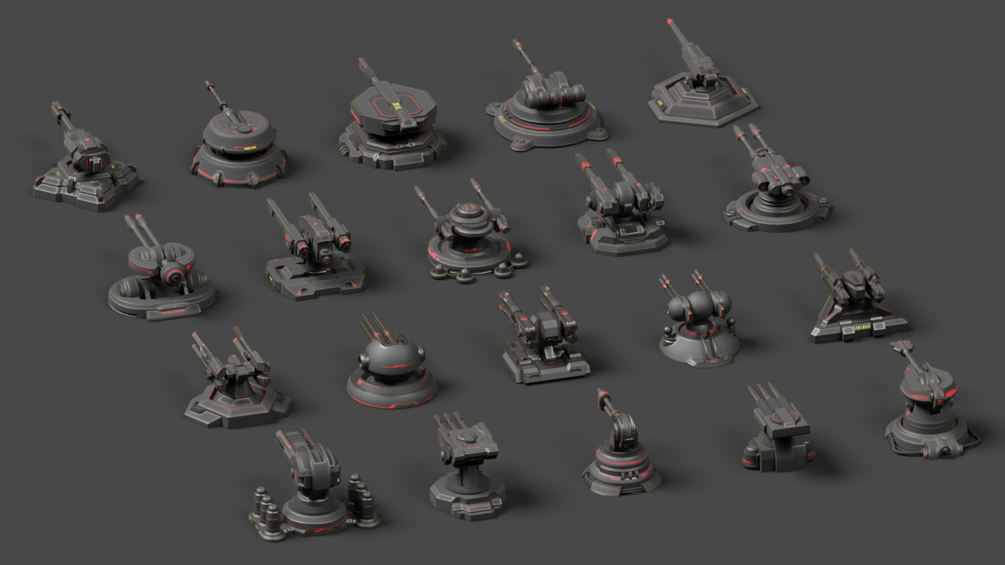3D turret models in blend, fbx, obj, and glb formats with 2K/4K textures